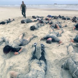 Tu aimes te baigner, t’allonger dans le sable et jouer avec tes potes… L’aguerrissement est peut-être pour toi… Mais oublie ton maillot de bain, viens plutôt en treillis…
